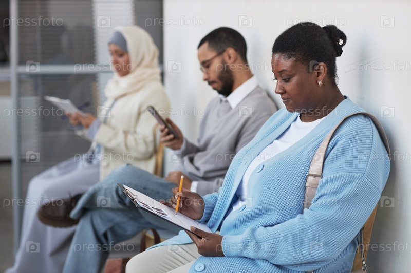 Молодая афроамериканская заявительница, указывающая на заполненную форму