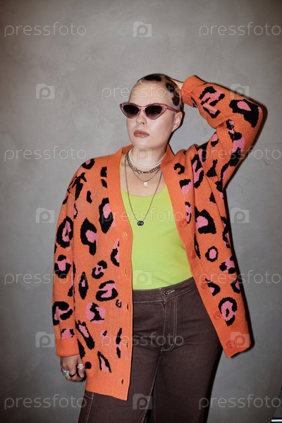 Модный портрет уверенной в себе молодой женщины с бузкотом