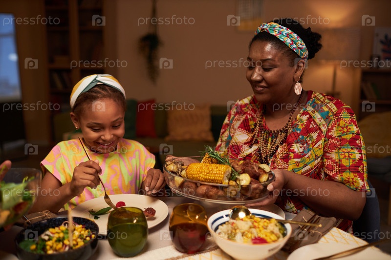 Мама помогает дочери за обеденным столом