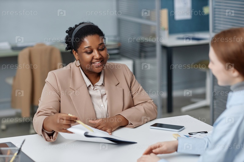 Женская HR-представительница разговаривает с кандидатом