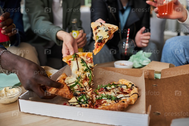Студенты подбирают кусочки пиццы