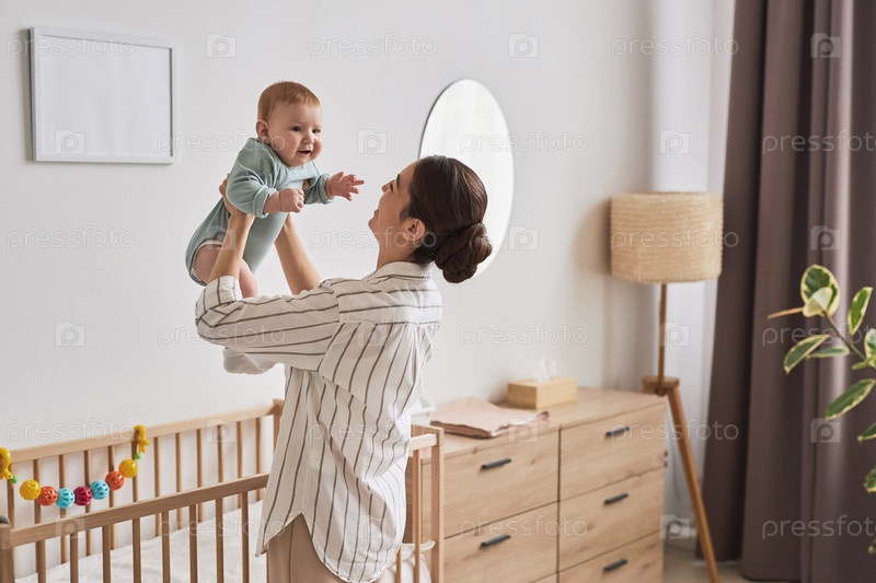 Счастливая мама играет с мальчиком дома и наслаждается материнством
