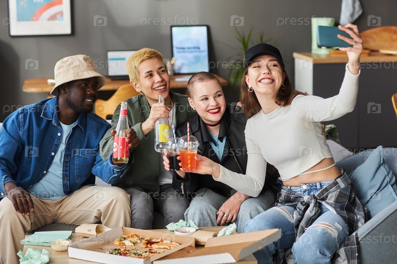 Молодые люди делают селфи