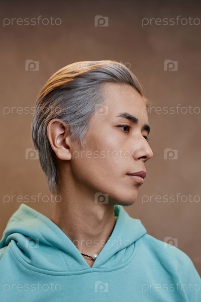 Близкий подход Молодой азиатский мужчина с современной прической для мужчин