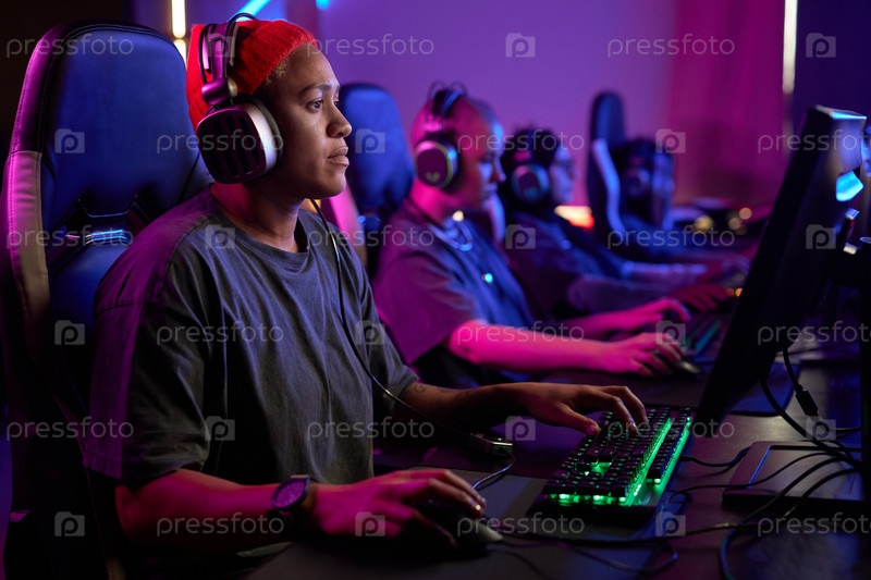 Черная женщина, играющая в видеоигры Профессионально в киберспортивном клубе