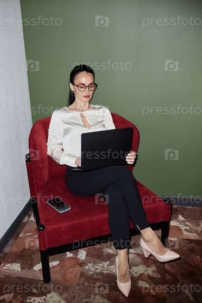 Молодая бизнес-леди использует компьютер