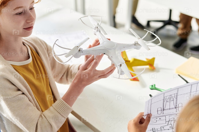 Ученица, изучающая квадрокоптер