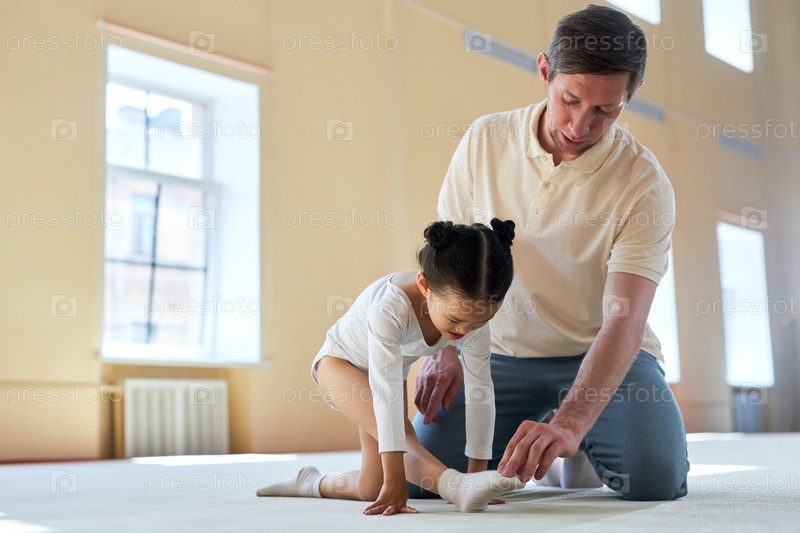 Тренер-помощник маленькой девочки Профессиональный гимнаст