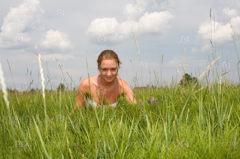 Красивая девушка сидит на траве