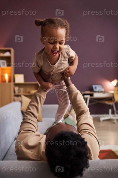 Милая черная девушка наслаждается игровым временем с отцом