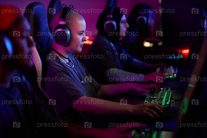 Женщина играет в видеоигры в киберспортивном клубе
