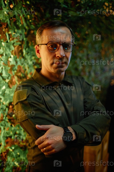 Уверенный зрелый мужской охранник в очках и форме
