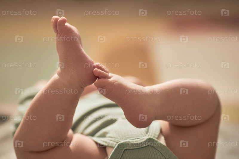 Близкий взгляд на милые детские ноги, качающиеся в воздухе