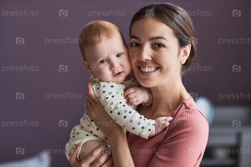 Ближайшее изображение Счастливая молодая мать обнимается с ребенком
