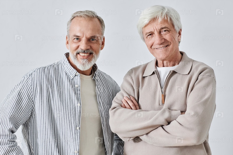 Два старших мужчины, улыбающиеся перед камерой