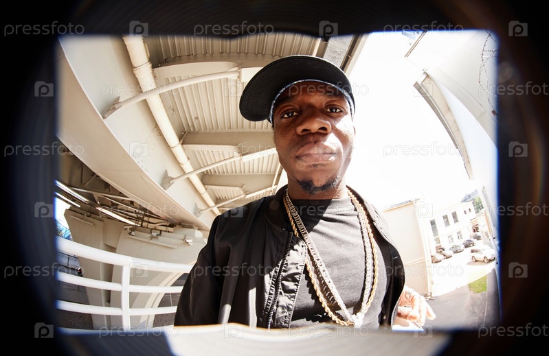 Афроамериканский парень в шляпе, футболке и бомбоубежище стоящий под мостом