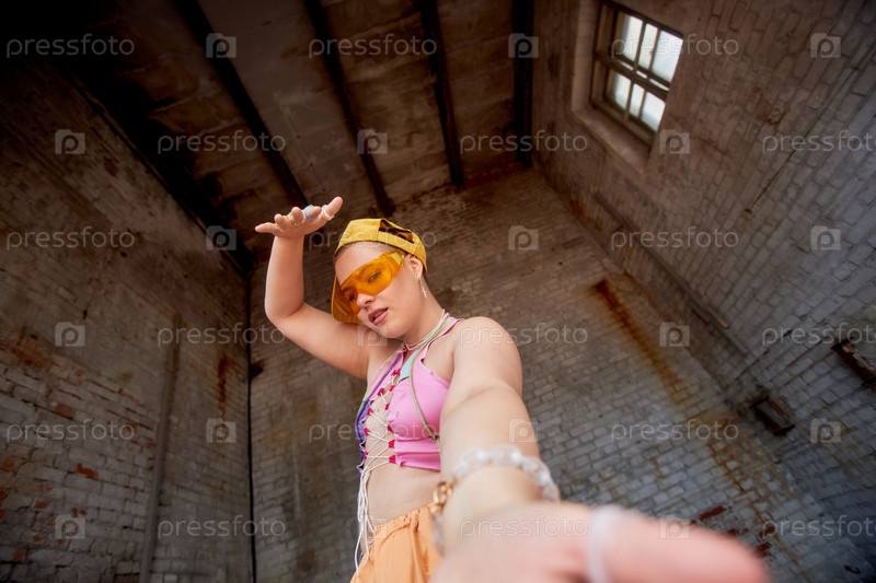 Жесткая молодая девушка, смотрящая на камеру, танцует урбанизм