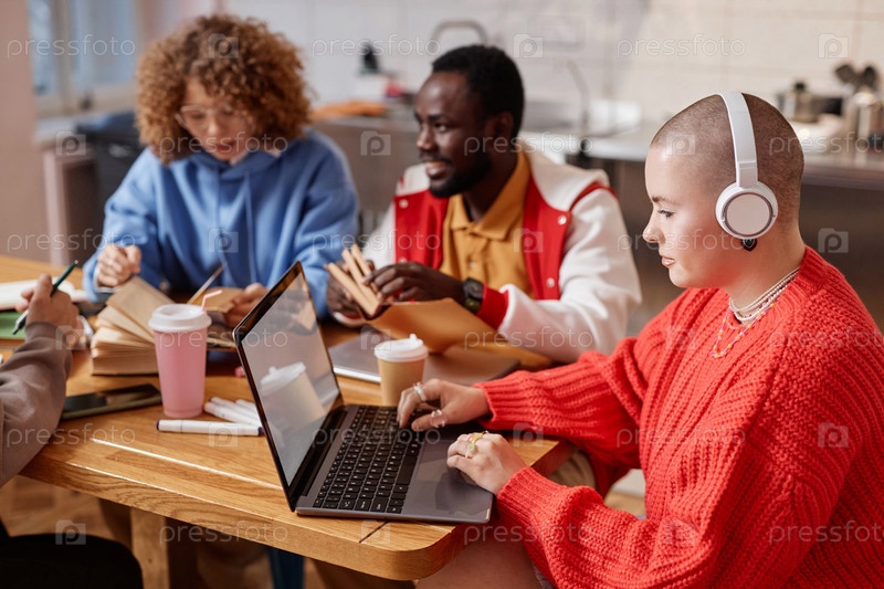 Мультиэтническая группа молодых людей, учащихся вместе