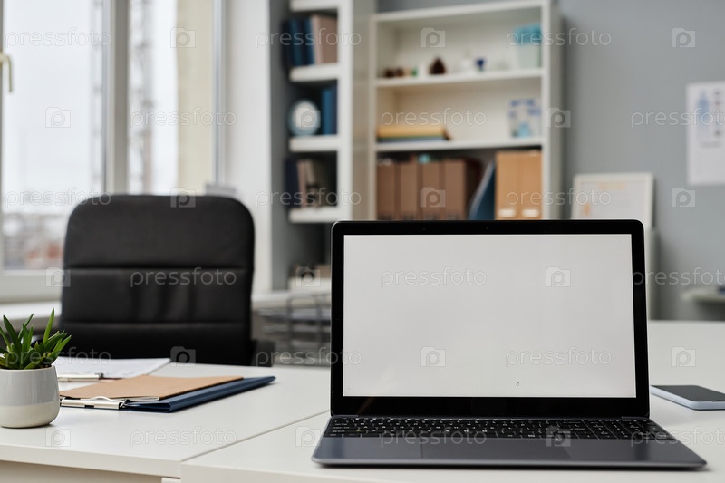 Часть офисного интерьера с ноутбуком на рабочем столе