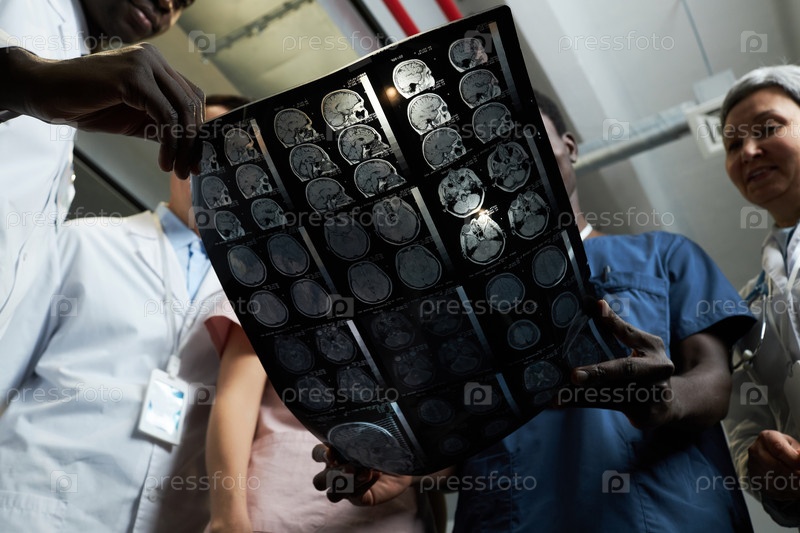 Сосредоточьтесь на рентгеновском изображении мозга пациента во время обсуждения возможного диагноза