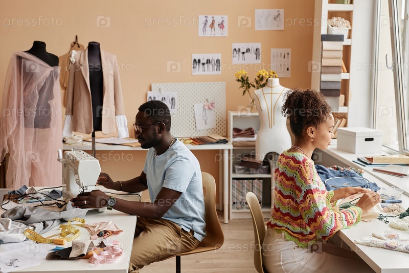 Две молодые афроамериканские модные дизайнеры, работающие в ателье