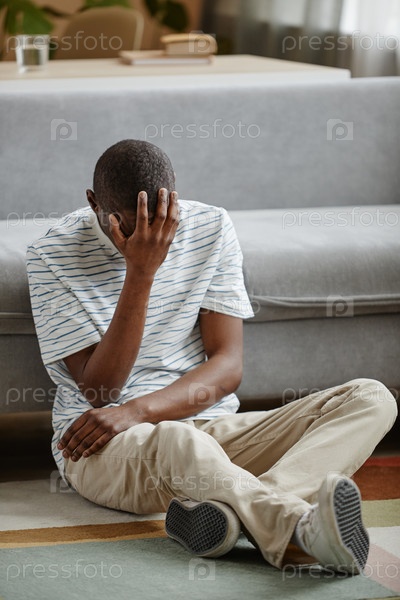 Чернокожий мужчина плачет на полу, страдая от депрессии