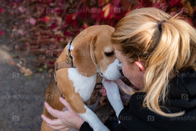 Нежные объятия женщины и собаки