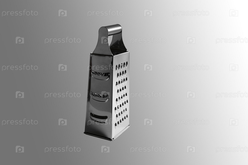 Ручная терка для овощей. Крупный план. Изолированные на сером фоне