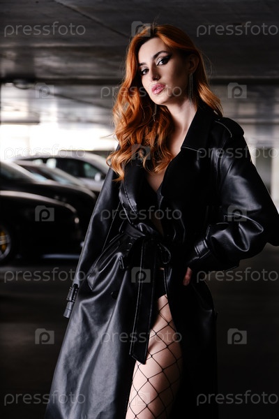 Женщина в кожаном пальто