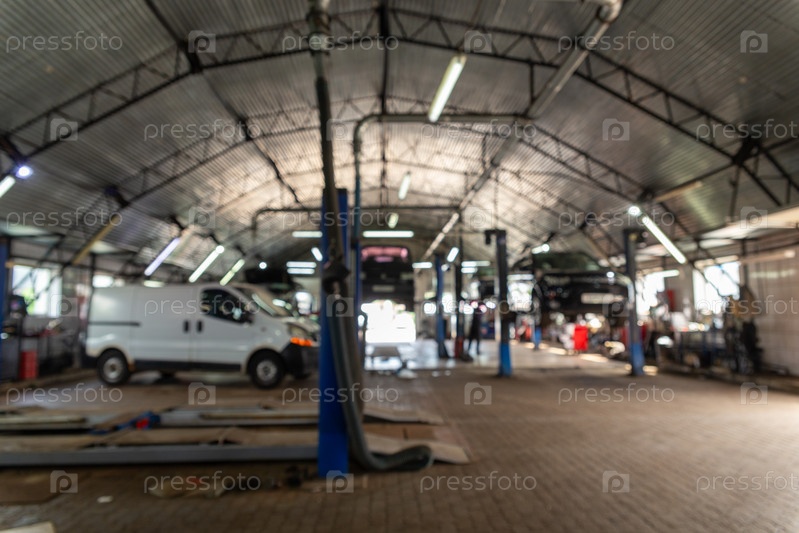 Размытое фоновое изображение с автомобилями в автосервисе