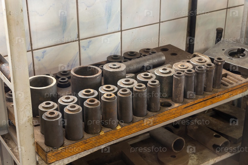Набор различных инструментов на полках в большой мастерской. Набор инструментов для ремонта и регулировки двигателя и его узлов