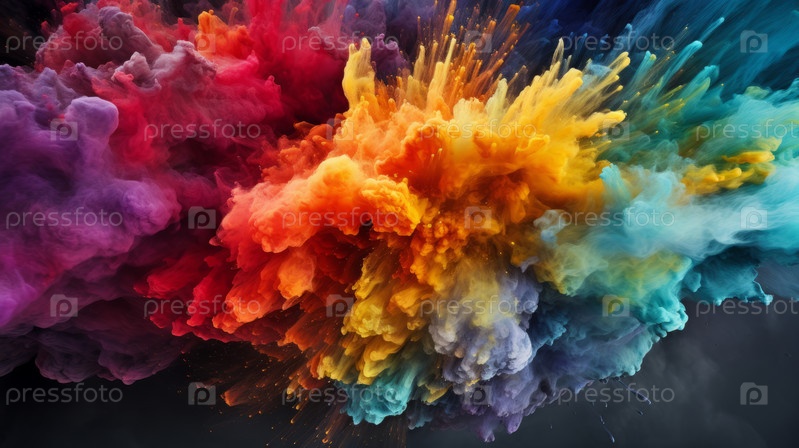 Красочный взрыв порошка на черном фоне. Абстрактные пастельные цвета частиц пыли всплеск