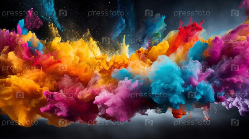 Красочный взрыв порошка на черном фоне. Абстрактные пастельные цвета частиц пыли всплеск