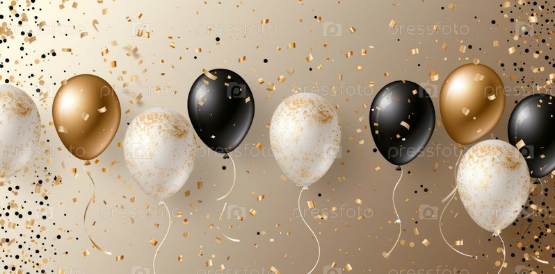 Фон с днем рождения с реалистичным воздушным шаром и золотым конфетти