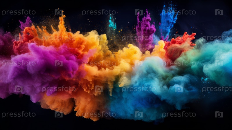 Красочный взрыв порошка на черном фоне. Абстрактные пастельные цвета частиц пыли всплеск