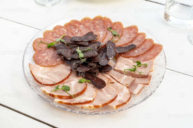 Мясная и колбасная нарезка на блюде