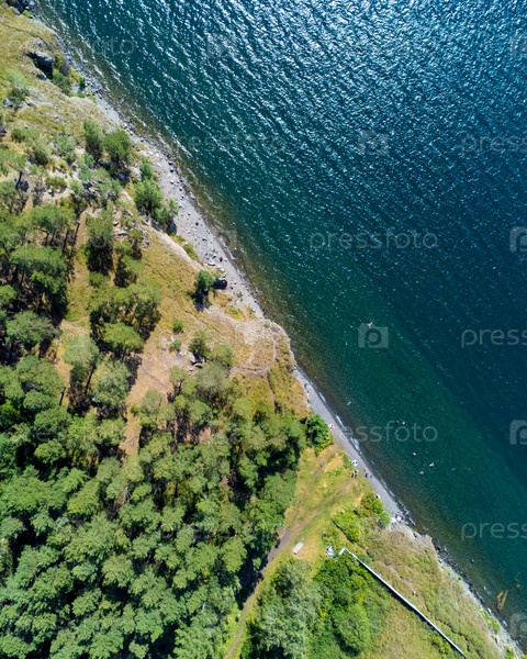Берег и озеро Тургояк съемка с воздуха