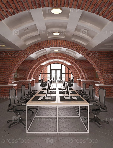 Интерьер современного офиса с кирпичными стенами