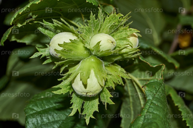 Созревают остатки обыкновенной орехи (лат. Corylus avellana). род кустарников семейства Березовых