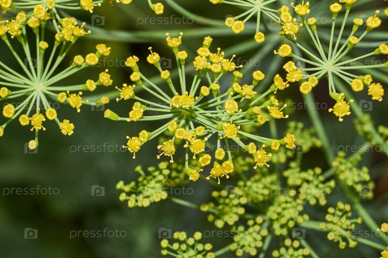В саду загородного дома цветет укроп. Соцветие укропа. Лето