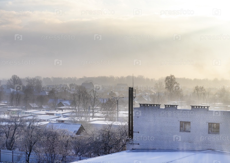 Пейзаж зимней деревни. Время года