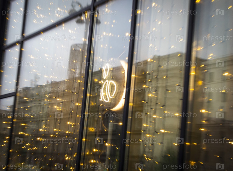 Концепция выстрела из окна магазина. На открытом воздухе