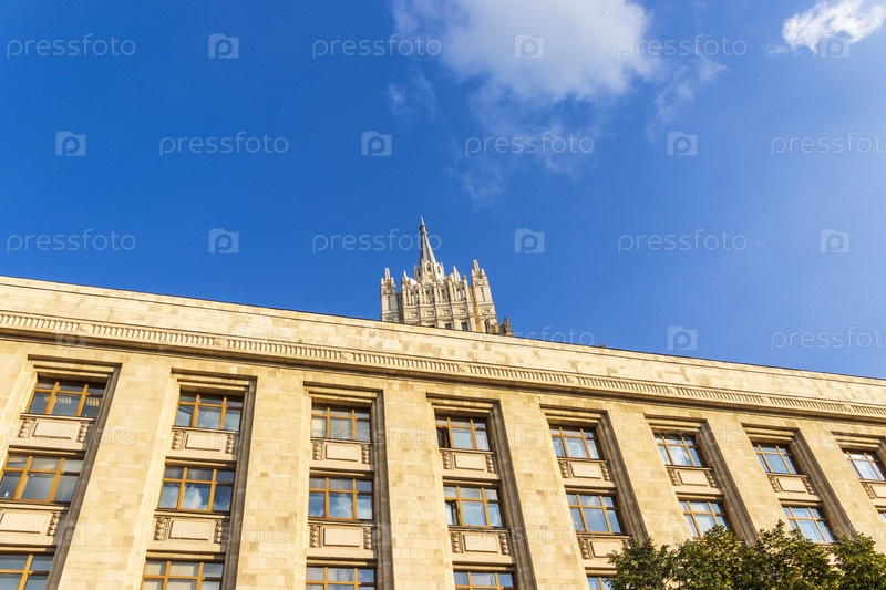 Москва, Россия - 24.07.2023 - Фасад Министерства иностранных дел Российской Федерации. Город