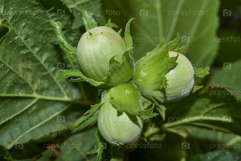 Созревают остатки обыкновенной орехи (лат. Corylus avellana). род кустарников семейства Березовых