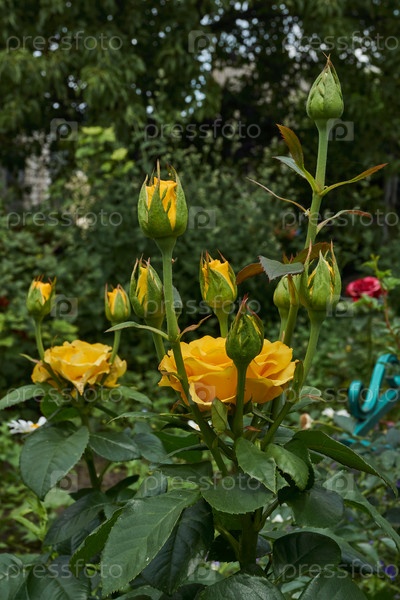 В саду загородного дома цветут розы. Лето