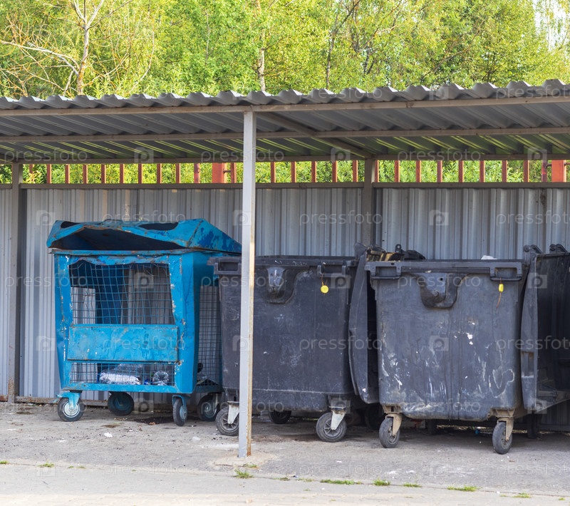 Крупный план старых мусорных контейнеров. Концепция