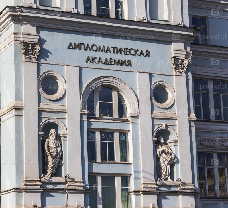 Москва, Россия - 07.09.2023 - Фасад здания дипломатической академии. Дипломатия
