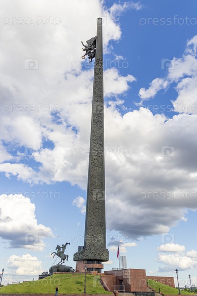 Москва, Россия - 21.07.2021 - Выстрел памятника на площади Победы, расположенной на Кутузовском проспекте. История