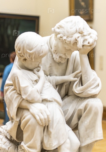 Москва, Россия - 08.10.2023 - Знаменитая скульптура Матвея Чижова "Крестьянин в беде" выставлена в Третьяковской галерее. Искусство