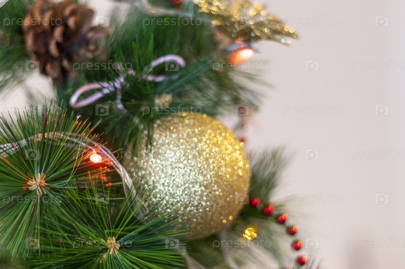 Крупный план украшенной рождественской елки. Праздничный день
